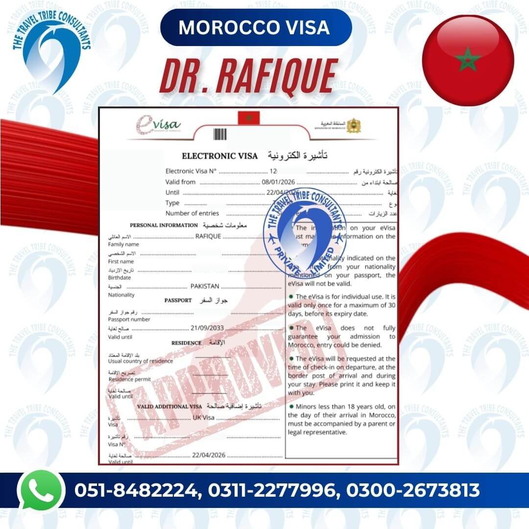 Congratulations! Dr. Rafique on getting Morocco Visit Visa & Thank you for trusting The Travel Tribe Consultants with your journey — your dream of exploring the Morocco’s breathtaking landscapes is now one step closer.